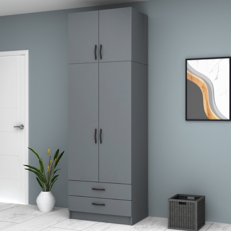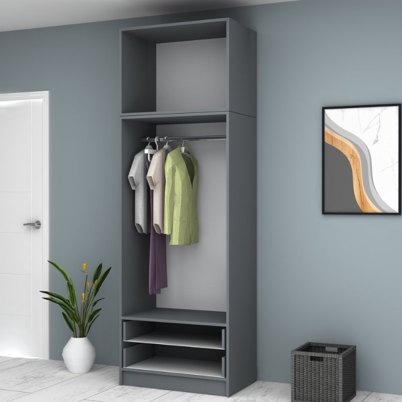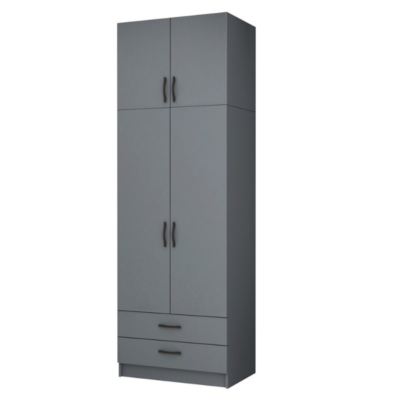 Ντουλάπα Ρούχων Ricardo Megapap Δίφυλλη με Πατάρι Χρώμα Ανθρακί 80x51,8x240εκ.