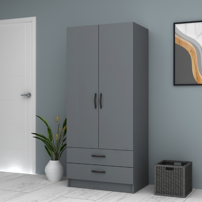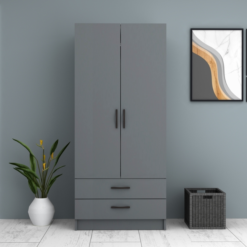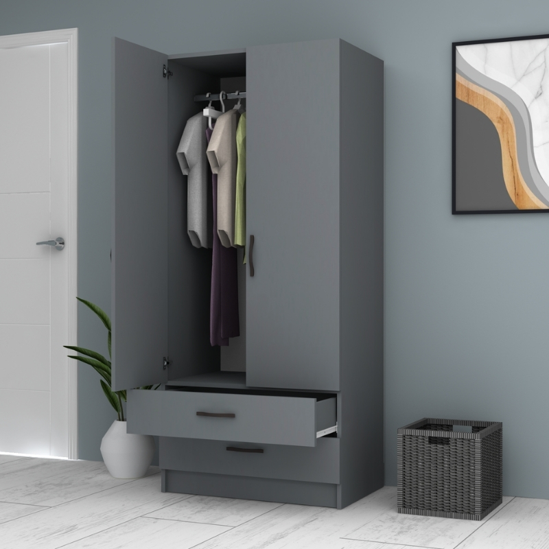 Ντουλάπα Ρούχων Ricardo Megapap Δίφυλλη Χρώμα Ανθρακί 80x51,8x181εκ.