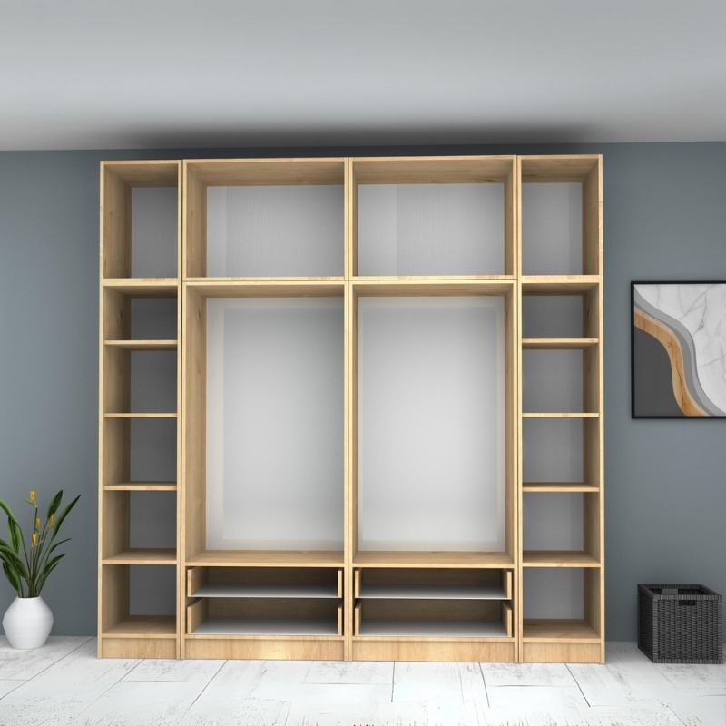 Ντουλάπα Ρούχων Ricardo Megapap Εξάφυλλη με Πατάρι Χρώμα Φυσικό Οξιάς 240x51,8x240εκ.