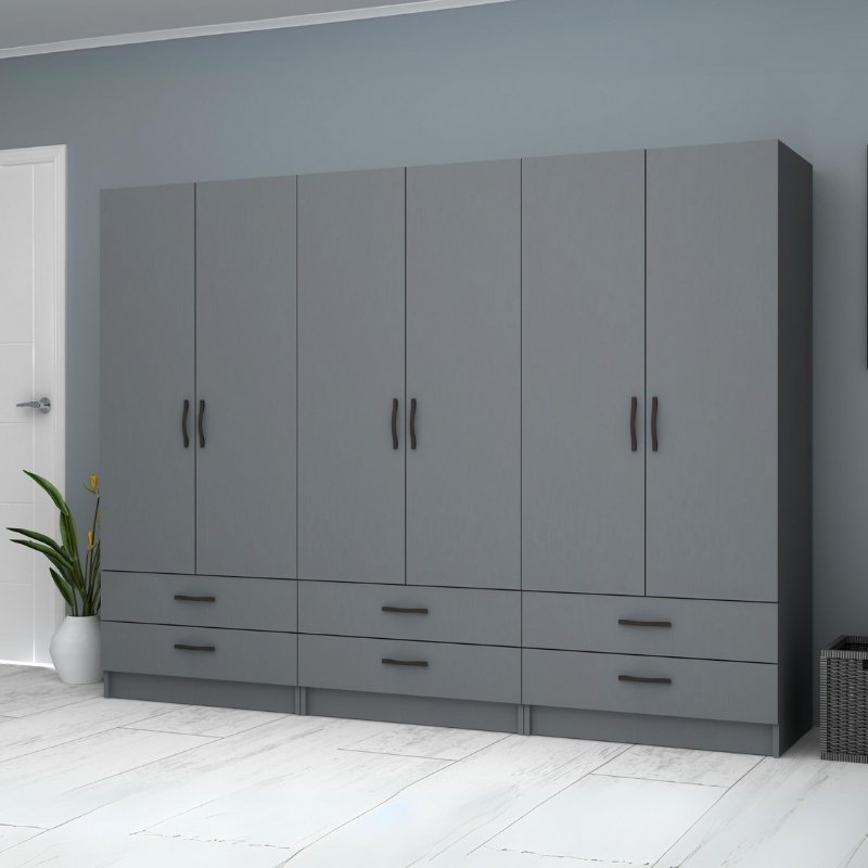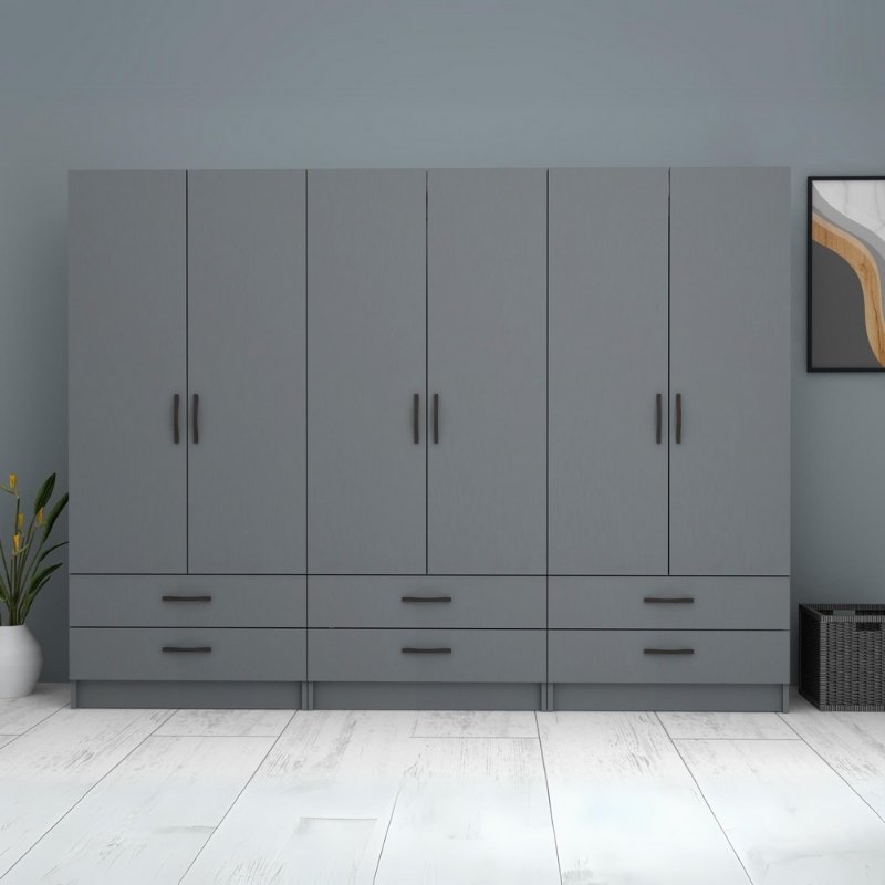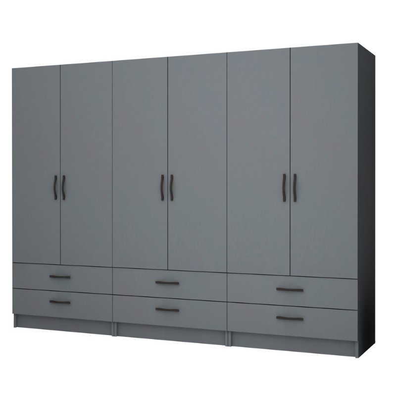Ντουλάπα Ρούχων Ricardo Megapap Εξάφυλλη Χρώμα Ανθρακί 240x51,8x181εκ.