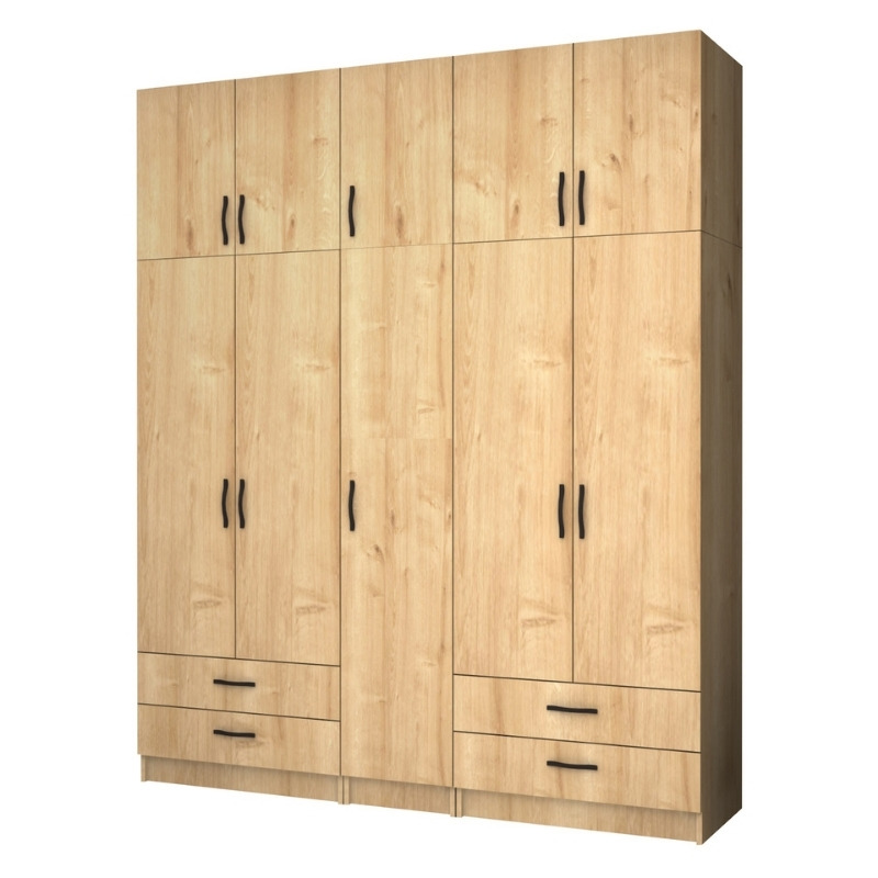 Ντουλάπα Ρούχων Ricardo Megapap Πεντάφυλλη με Πατάρι Χρώμα Φυσικό Οξιάς 200x51,8x240εκ.