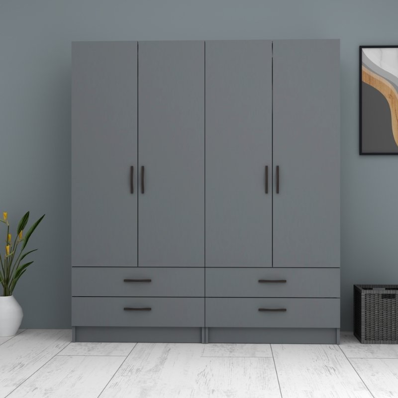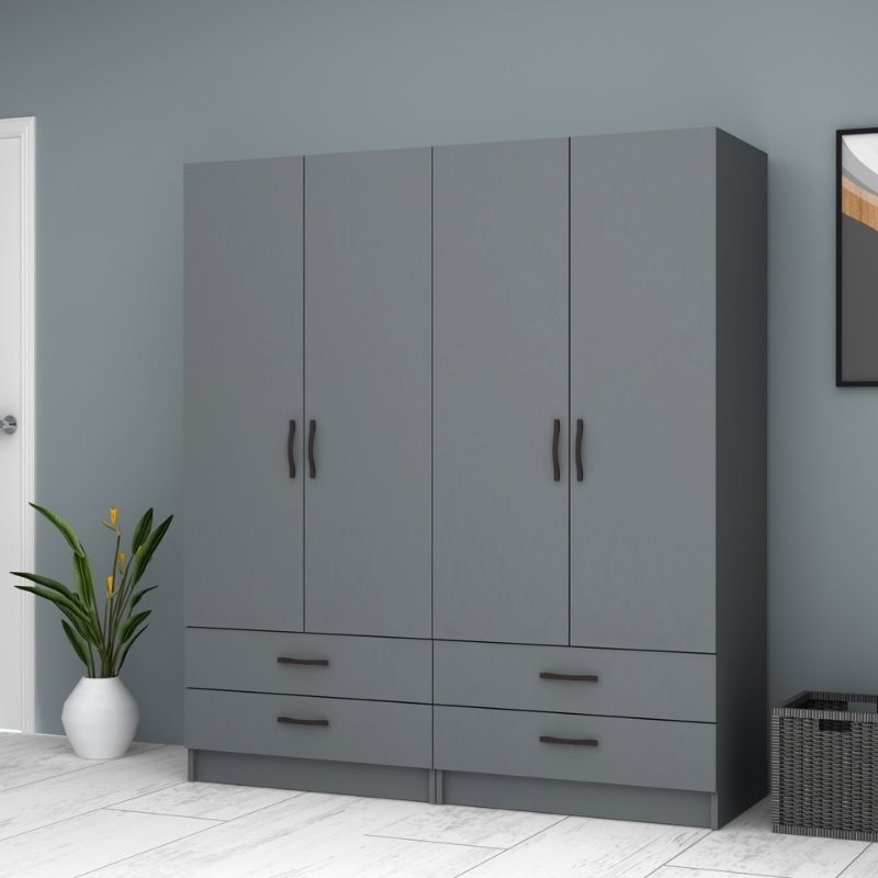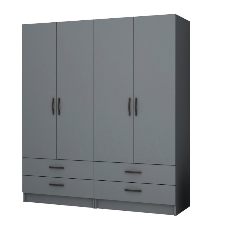 Ντουλάπα Ρούχων Ricardo Megapap Τετράφυλλη Χρώμα Ανθρακί 160x51,8x181εκ.