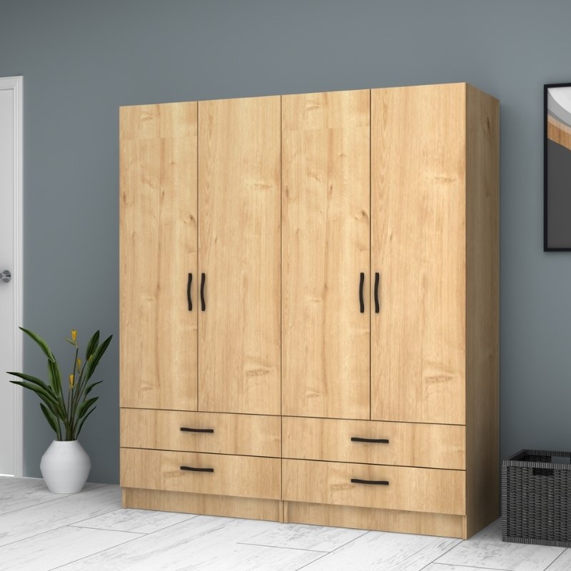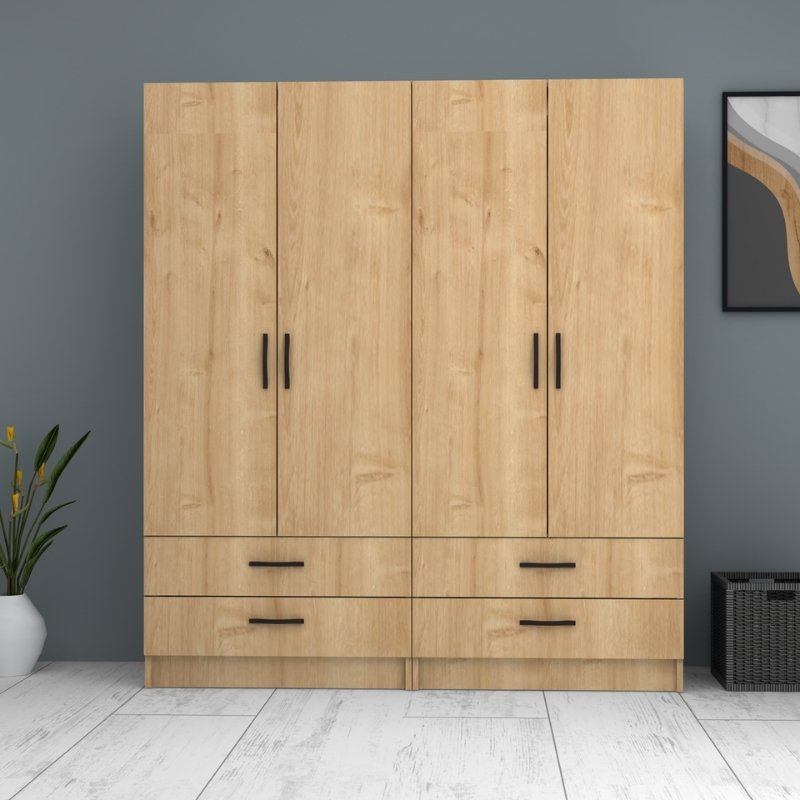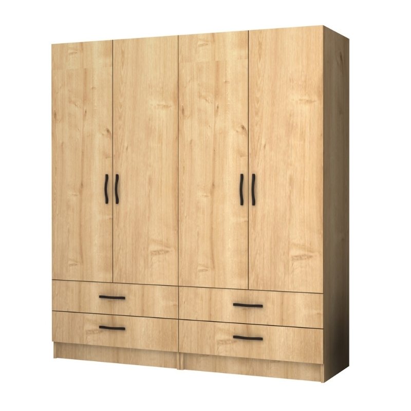 Ντουλάπα Ρούχων Ricardo Megapap Τετράφυλλη Χρώμα Φυσικό Οξιάς 160x51,8x181εκ.