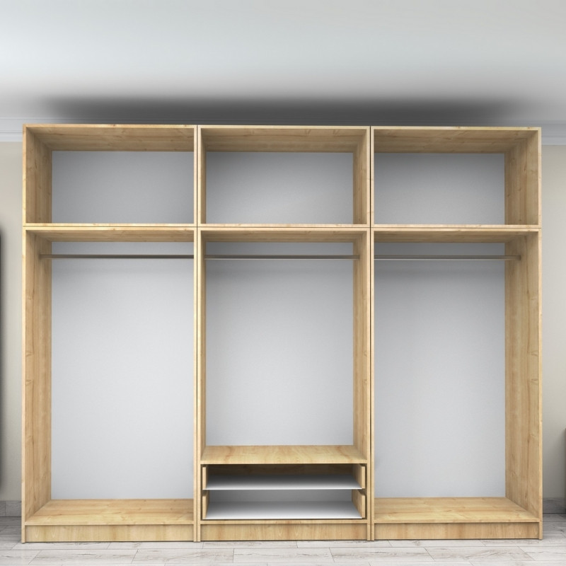 Ντουλάπα Ρούχων Victoria Megapap Εξάφυλλη με Πατάρι και Συρτάρια Χρώμα Φυσικό Οξιάς 300x60x240εκ.