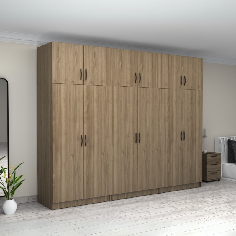 Ντουλάπα Ρούχων Victoria Megapap Εξάφυλλη με Πατάρι Χρώμα Καρυδί 300x60x240εκ.