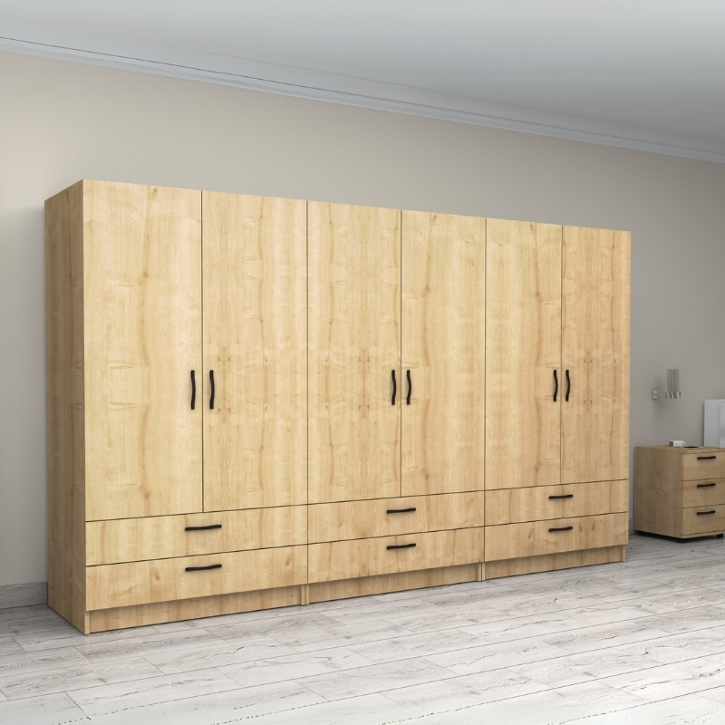 Ντουλάπα Ρούχων Victoria Megapap Εξάφυλλη με Συρτάρια Χρώμα Φυσικό Οξιάς 300x60x181εκ.