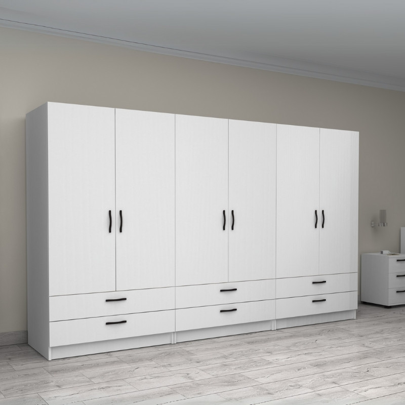 Ντουλάπα Ρούχων Victoria Megapap Εξάφυλλη με Συρτάρια Χρώμα Λευκό 300x60x181εκ.