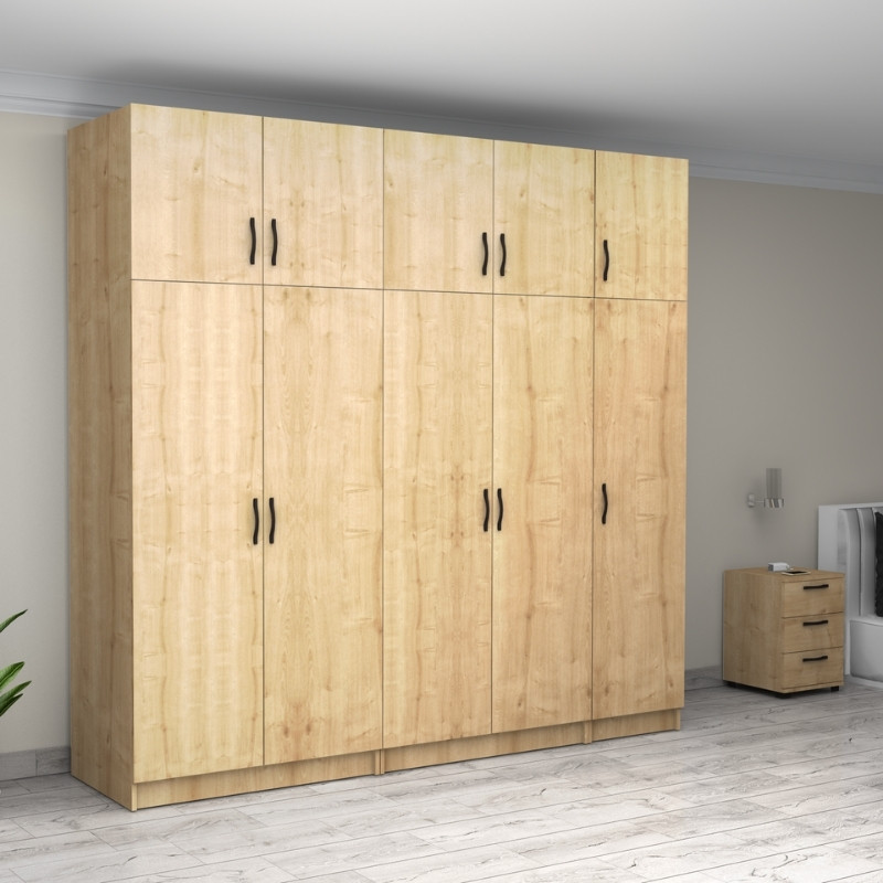 Ντουλάπα Ρούχων Victoria Megapap Πεντάφυλλη με Πατάρι Χρώμα Φυσικό Οξιάς 250x60x240εκ.
