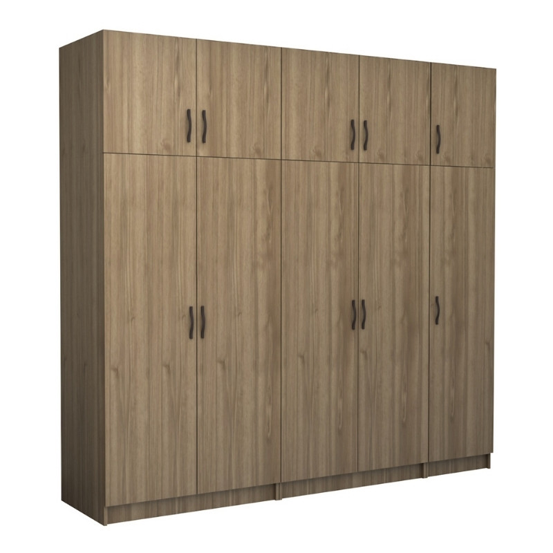 Ντουλάπα Ρούχων Victoria Megapap Πεντάφυλλη με Πατάρι Χρώμα Καρυδί 250x60x240εκ.
