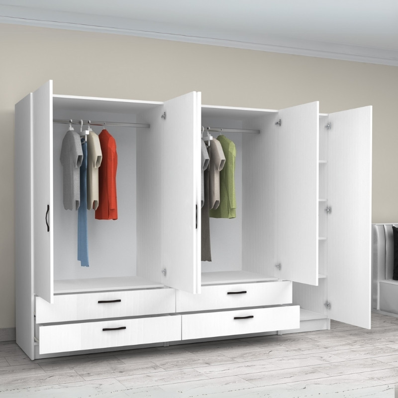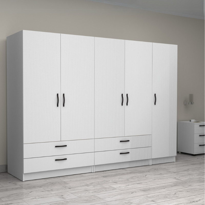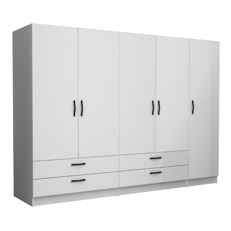 Ντουλάπα Ρούχων Victoria Megapap Πεντάφυλλη με Συρτάρια Χρώμα Λευκό 250x60x181εκ.