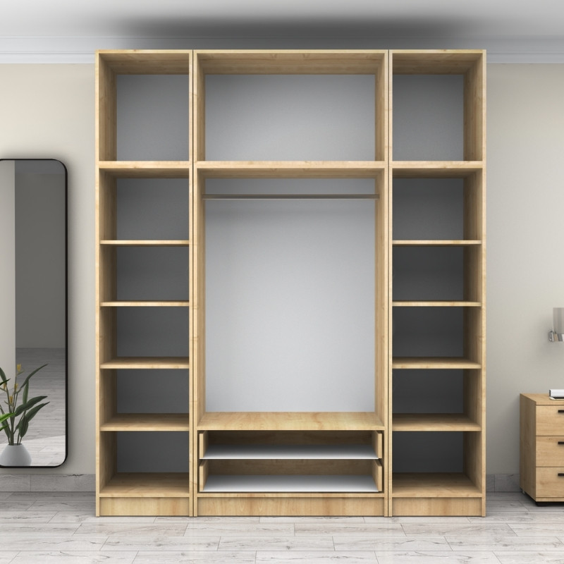 - Στο εσωτερικό της φέρει μια μεταλλική βέργα για κρεμάστρες και ράφια για μεγαλύτερη αποθήκευση. Στο κάτω μέρος φέρει δύο πρακτικά συρόμενα συρτάρια.