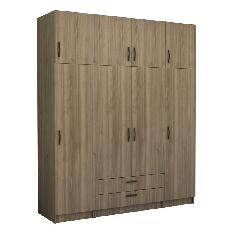 Ντουλάπα Ρούχων Victoria Megapap Τετράφυλλη με Πατάρι και Συρτάρια Χρώμα Καρυδί 200x60x240εκ.