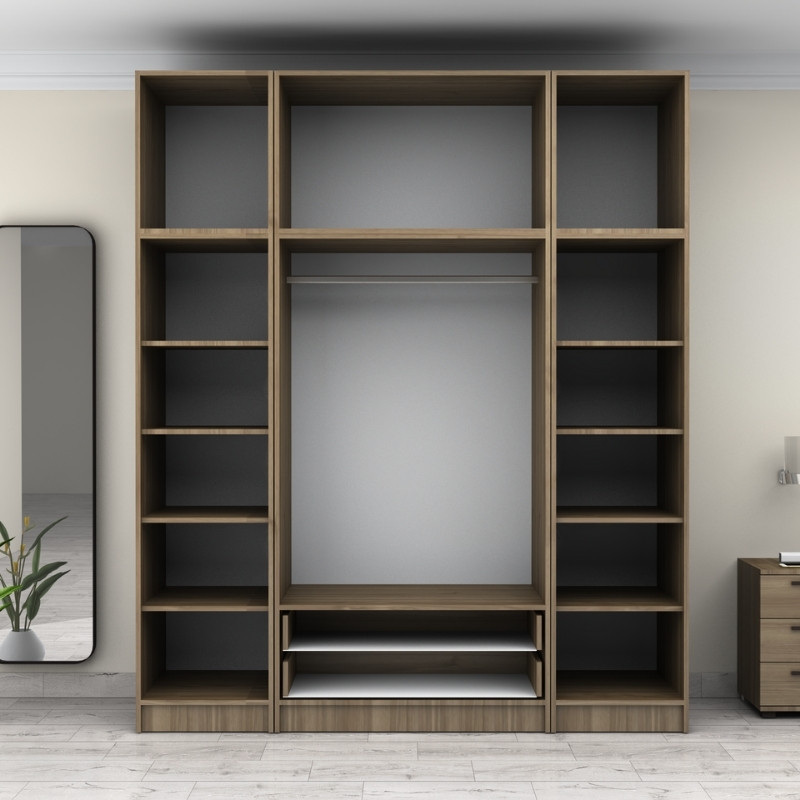 - Στο εσωτερικό της φέρει μια μεταλλική βέργα για κρεμάστρες και ράφια για μεγαλύτερη αποθήκευση. Στο κάτω μέρος φέρει δύο πρακτικά συρόμενα συρτάρια.