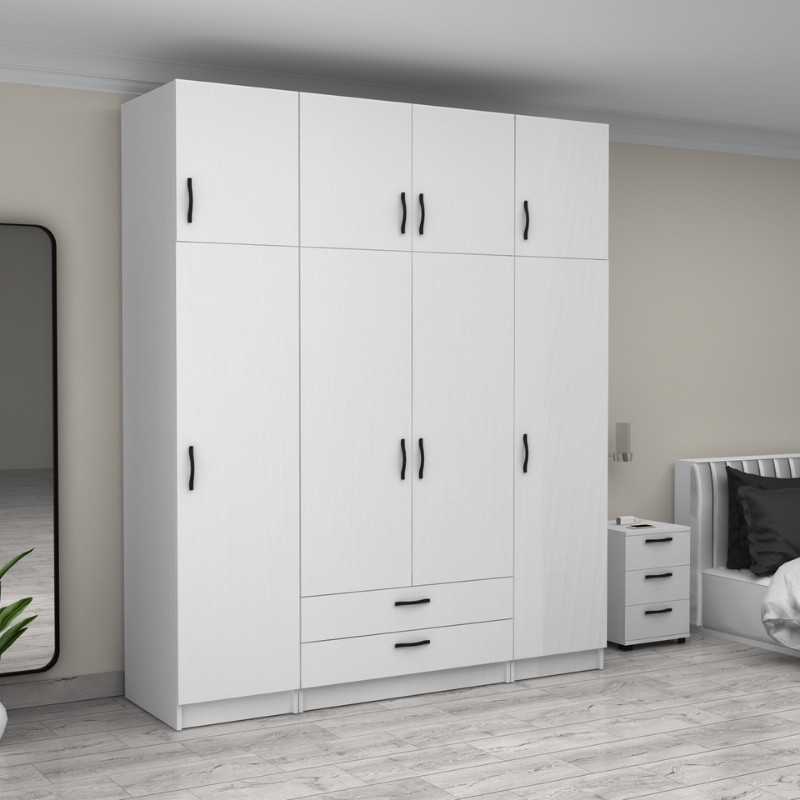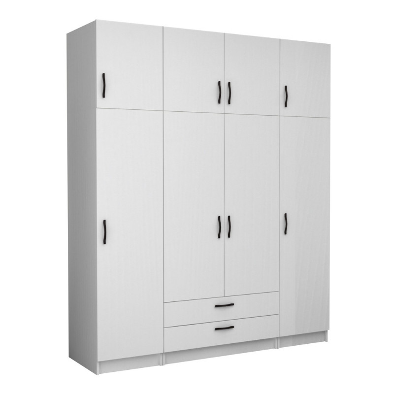 Ντουλάπα Ρούχων Victoria Megapap Τετράφυλλη με Πατάρι και Συρτάρια Χρώμα Λευκό 200x60x240εκ.