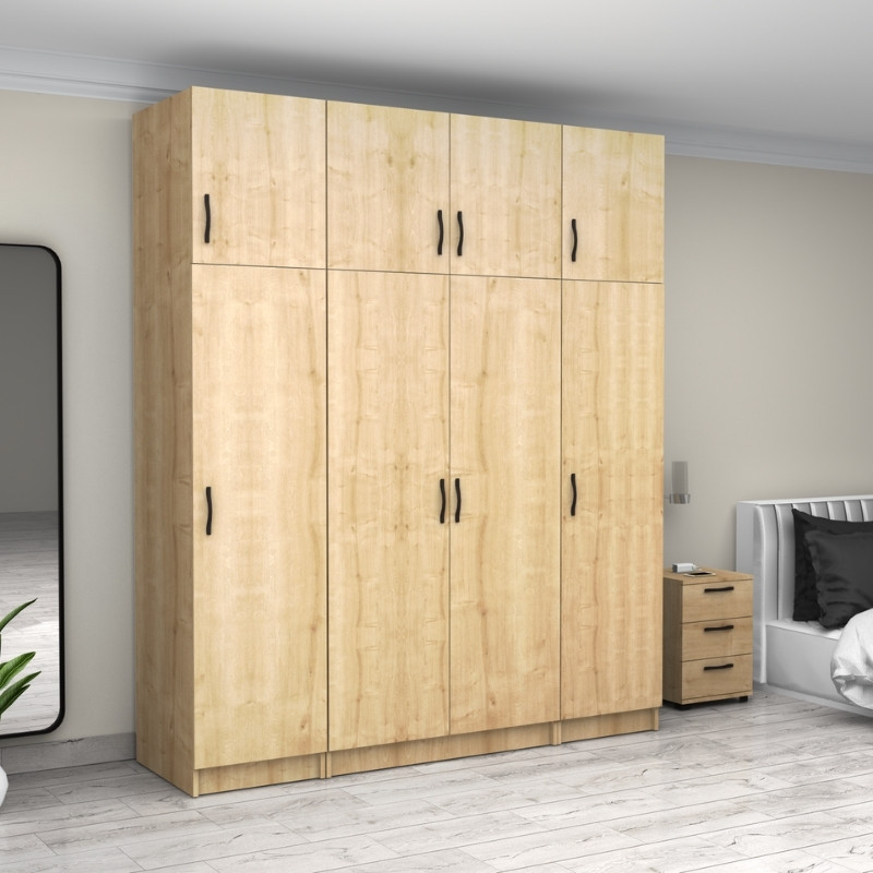 Ντουλάπα Ρούχων Victoria Megapap Τετράφυλλη με Πατάρι Χρώμα Φυσικό Οξιάς 200x60x240εκ.