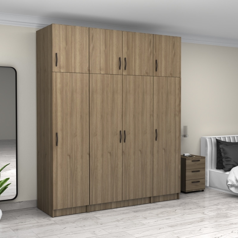 Ντουλάπα Ρούχων Victoria Megapap Τετράφυλλη με Πατάρι Χρώμα Καρυδί 200x60x240εκ.