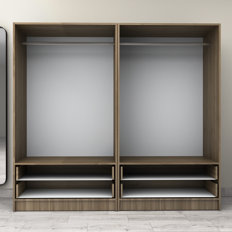 Ντουλάπα Ρούχων Victoria Megapap Τετράφυλλη με Συρτάρια Χρώμα Καρυδί 200x60x181εκ.