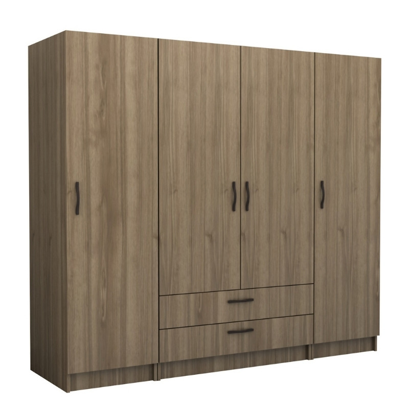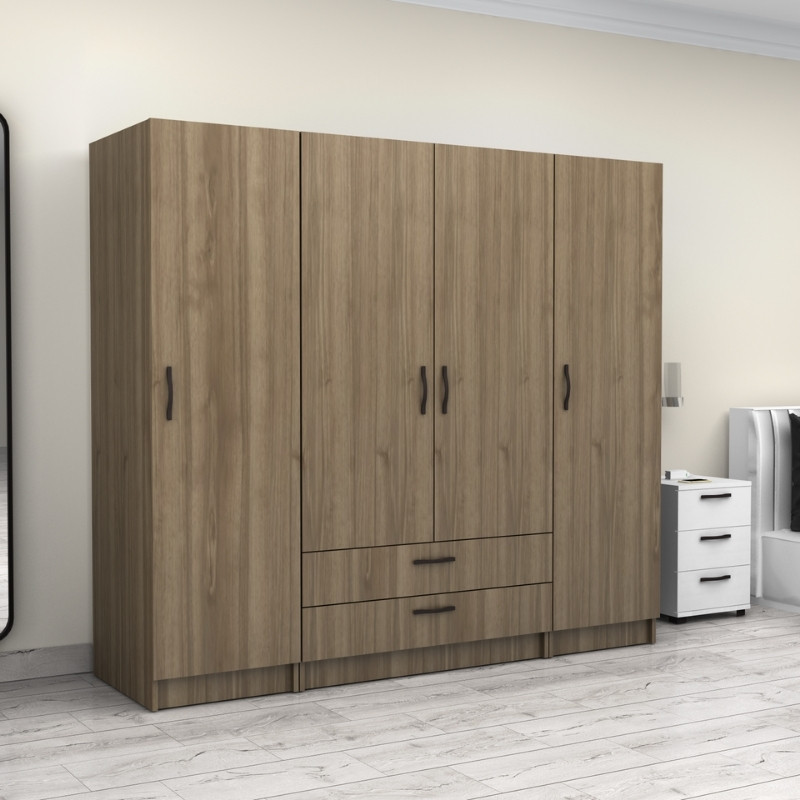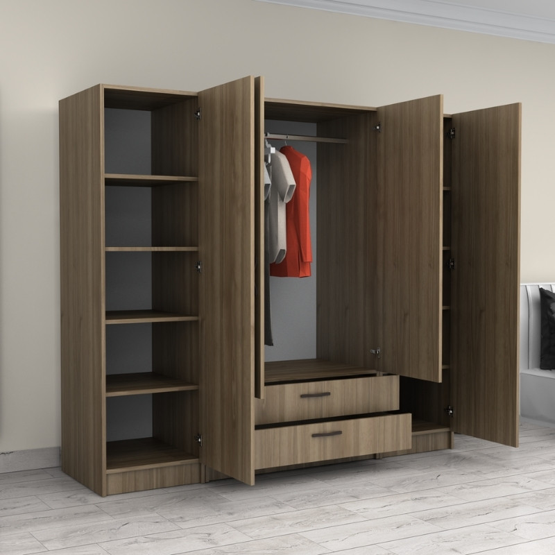 Ντουλάπα Ρούχων Victoria Megapap Τετράφυλλη με Συρτάρια Χρώμα Καρυδί 200x60x181εκ.