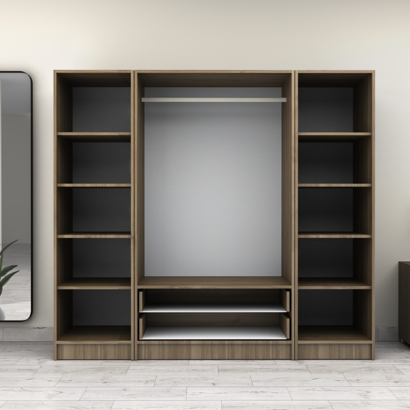 - Στο εσωτερικό της φέρει μια μεταλλική βέργα για κρεμάστρες και ράφια για μεγαλύτερη αποθήκευση. Στο κάτω μέρος φέρει δύο πρακτικά συρόμενα συρτάρια.