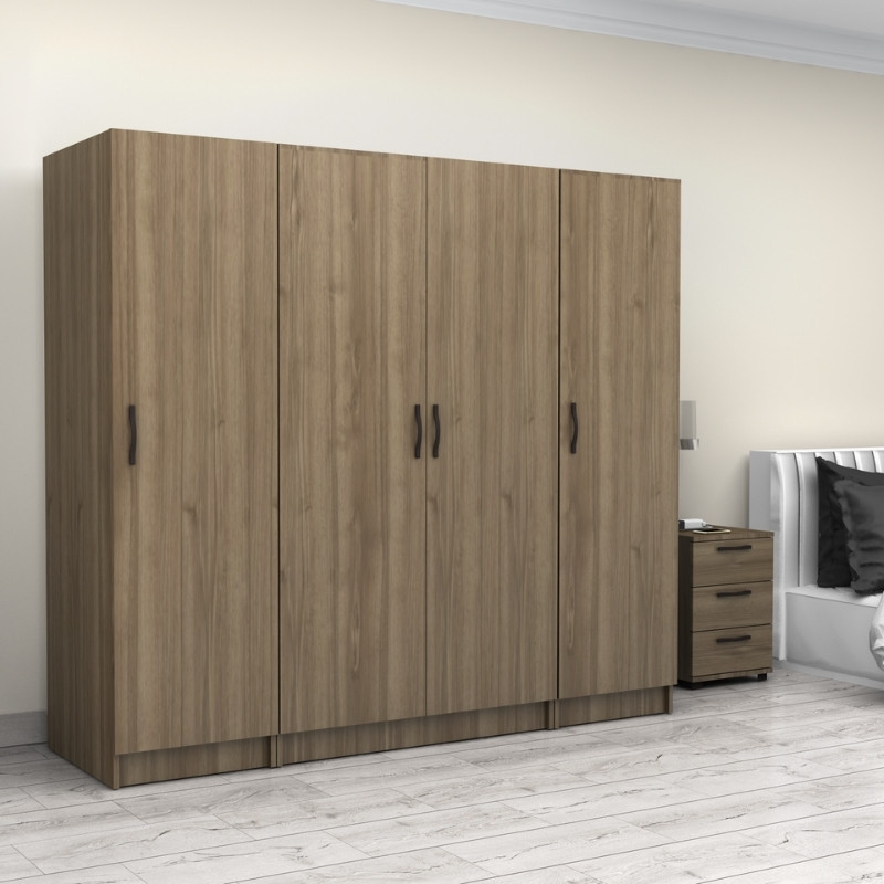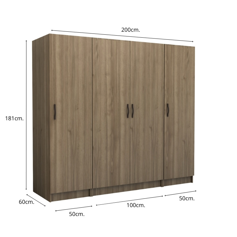 Ντουλάπα Ρούχων Victoria Megapap Τετράφυλλη Χρώμα Καρυδί 200x60x181εκ.