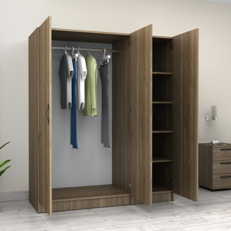 Ντουλάπα Ρούχων Victoria Megapap Τρίφυλλη Χρώμα Καρυδί 150x60x181εκ.