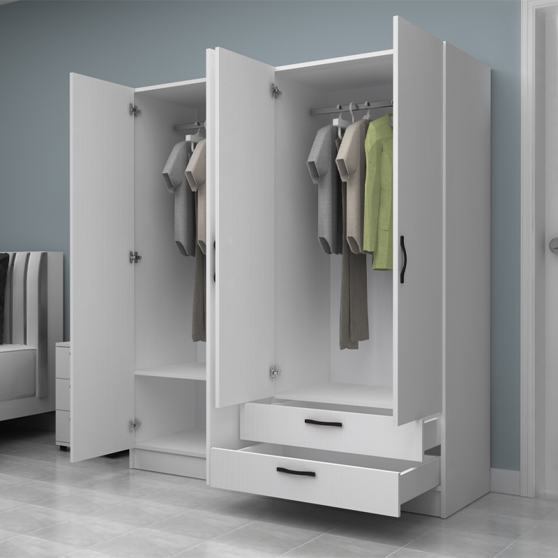 Ντουλάπα Ρούχων Vivian Megapap Τετράφυλλη με Συρτάρια Χρώμα Λευκό 160x51,8x181εκ.
