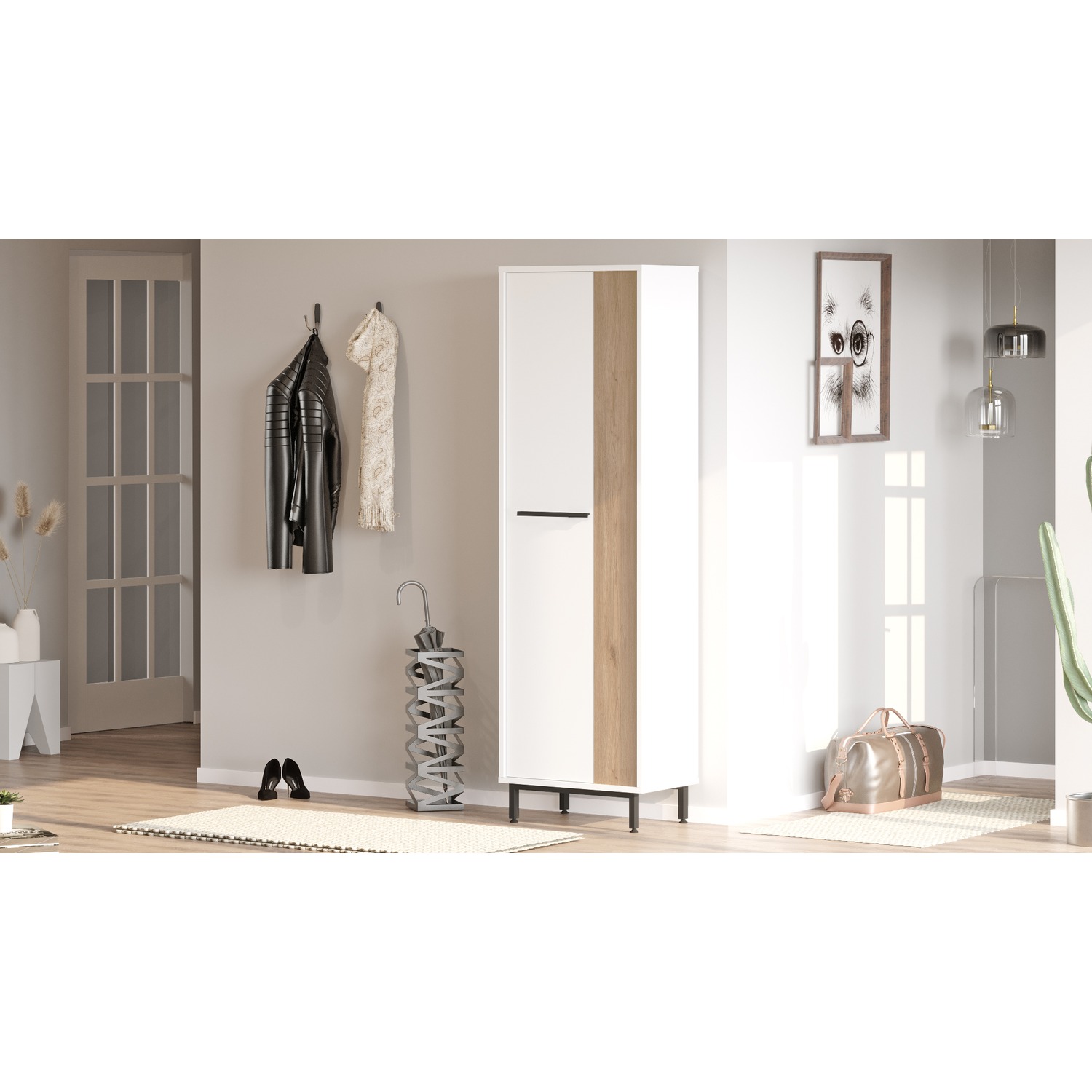 Παπουτσοθήκη ArteLibre INVERCLYDE Λευκό/Φυσικό Μοριοσανίδα/Μελαμίνη 57.2x35.5x173.6cm