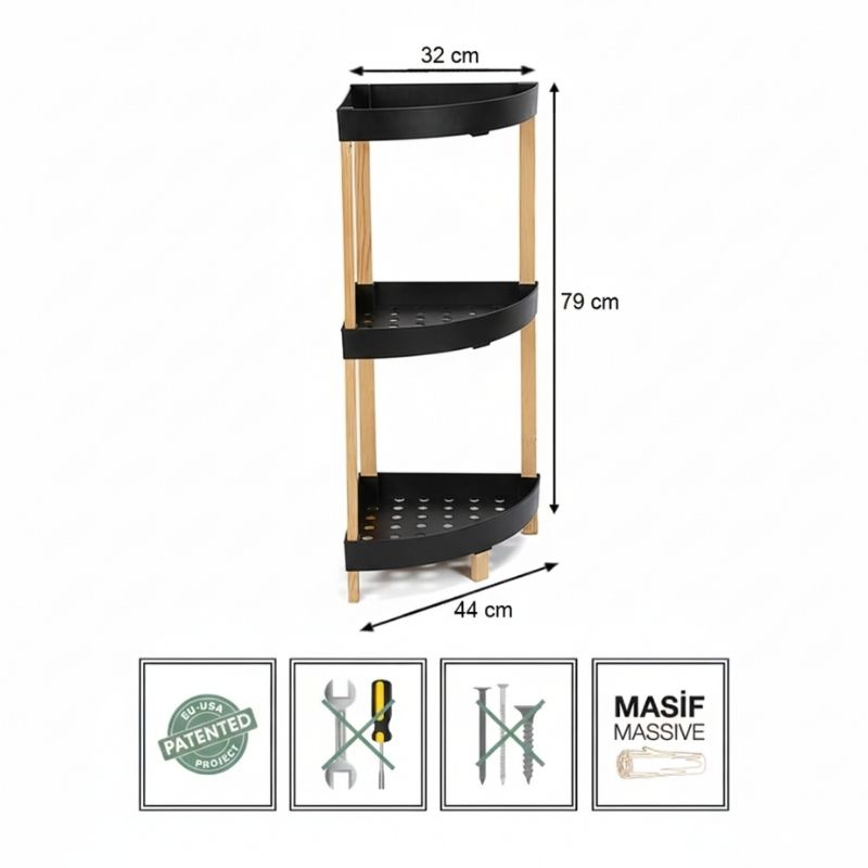 Ραφιέρα Δαπέδου Γωνιακή Πλαστική - Ξύλινη Χρώμα Φυσικό - Μαύρο 44x32x79εκ.