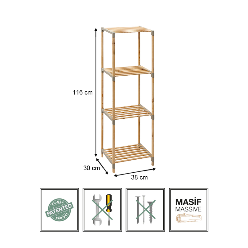 Ραφιέρα Δαπέδου Ξύλινη - Πλαστική Χρώμα Φυσικό - Μπεζ 38x30x116εκ.
