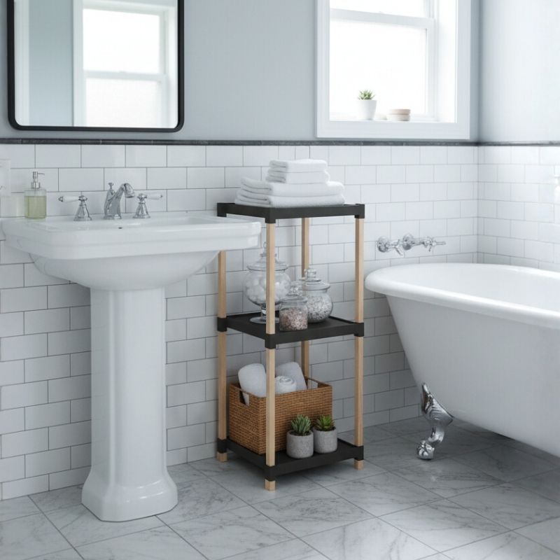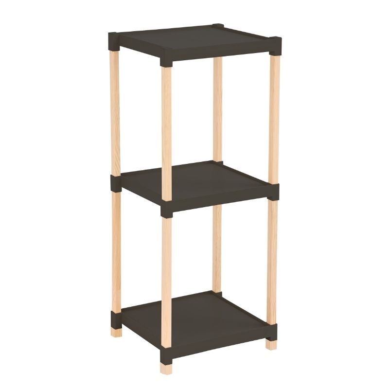 Ραφιέρα Δαπέδου Πλαστική - Ξύλινη Χρώμα Φυσικό - Μαύρο 28x25x72εκ.