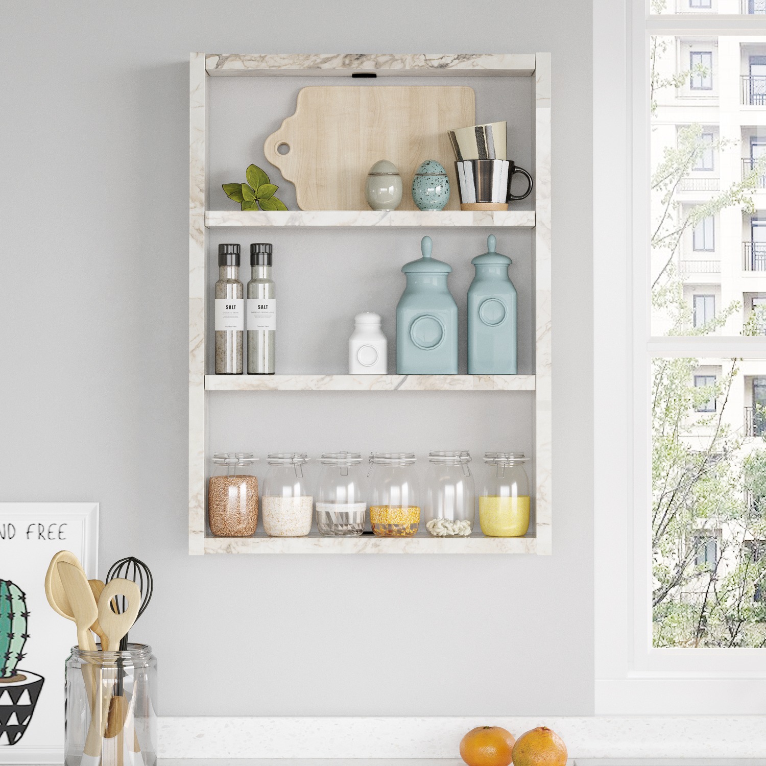 Ράφι Τοίχου ArteLibre EARLS Λευκό Με Εφέ Μάρμαρο Μοριοσανίδα 43.2x9x60cm
