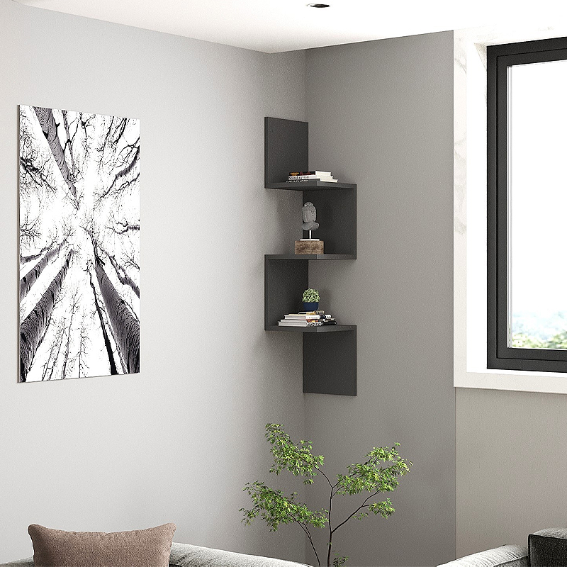 Ραφιέρα Τοίχου Zikzak Megapap Χρώμα Ανθρακί 25x25x105,4εκ.