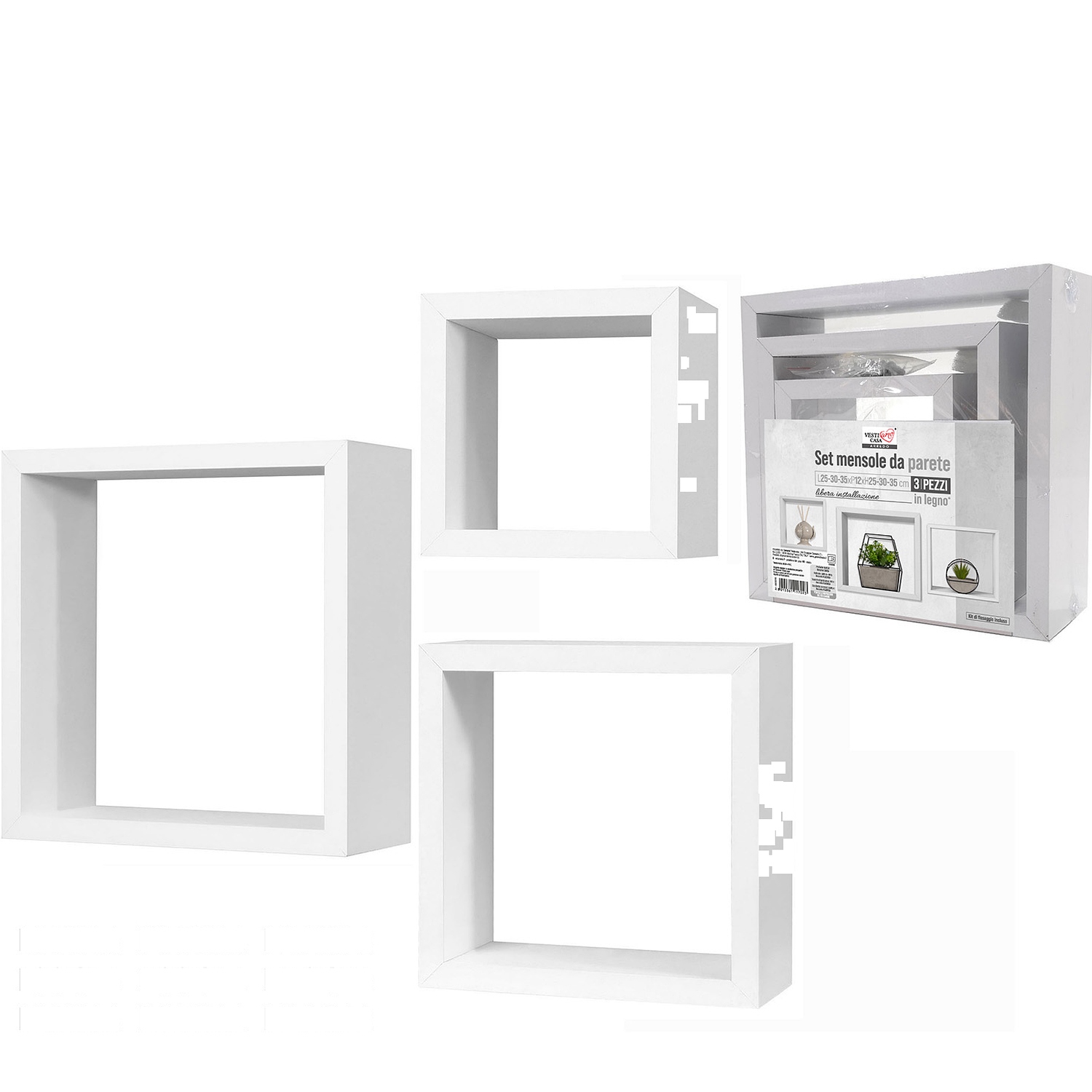 Σετ Ραφιών Κύβοι Λευκό Ξύλο 35x35x12cm/30x30x12cm/25x25x12cm 3Τμχ