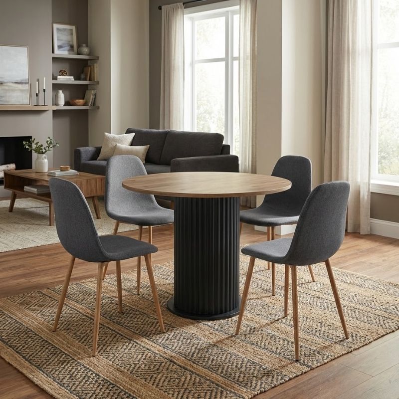 Σετ Τραπεζαρία 5τμχ Bohema - Iris Megapap Χρώμα Μαύρο/sepet oak - Γκρι/φυσικό Πόδι Ø90x77,7εκ.