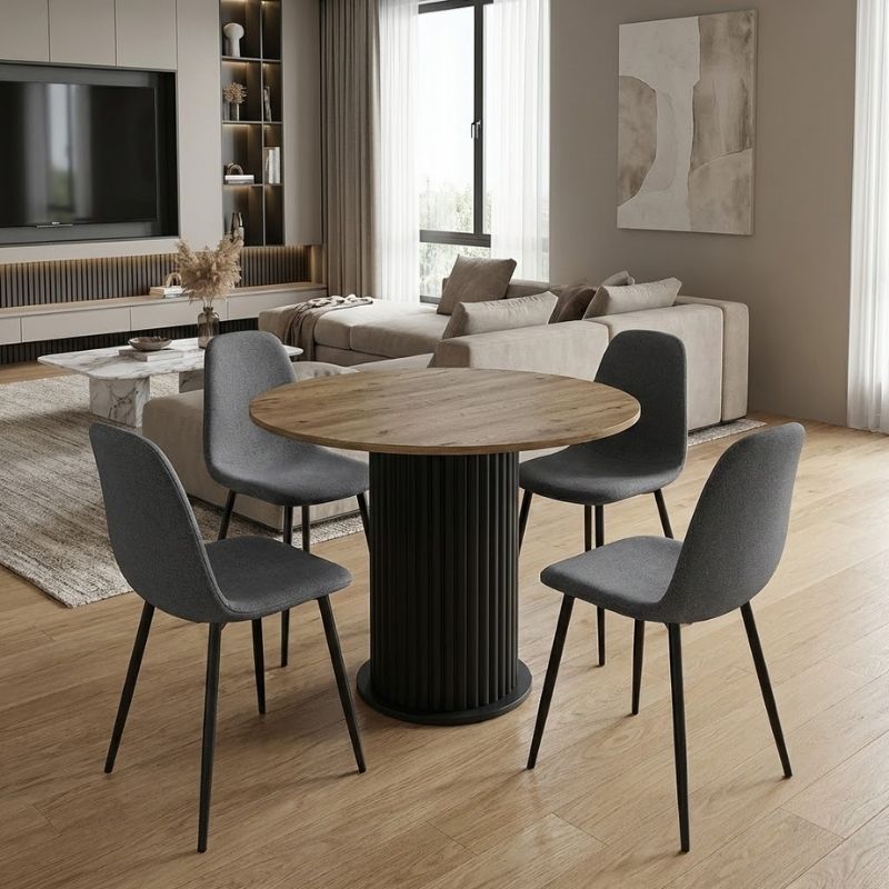 Σετ Τραπεζαρία 5τμχ Bohema - Iris Megapap Χρώμα Μαύρο/sepet oak - Γκρι Ø90x77,7εκ.
