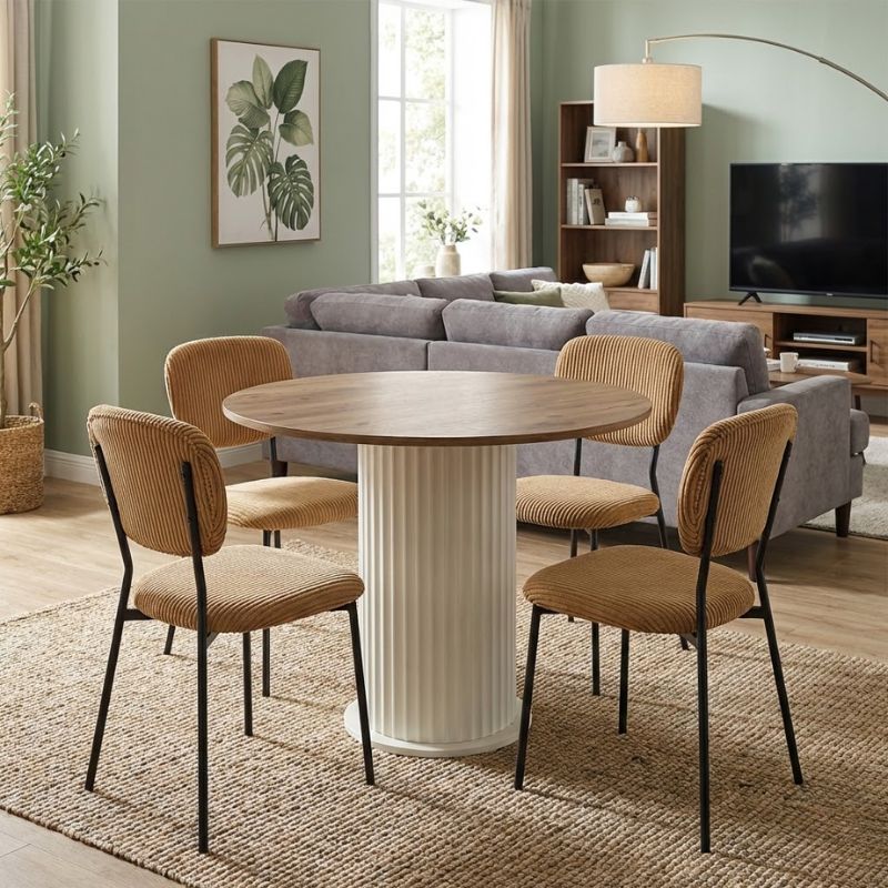 Σετ Τραπεζαρία 5τμχ Bohema - Kevin Megapap Χρώμα Ivory/sepet oak - Μουσταρδί Ø90x77,7εκ.