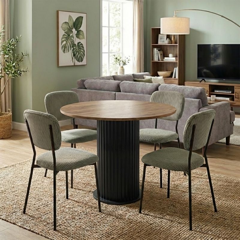Η τραπεζαρία Bohema - Kevin θα φέρει μία αίσθηση εκλεπτυσμένης κομψότητας στον χώρο σας. Το πλούσιο κοτλέ ύφασμα της καρέκλας χαρίζει ζεστασιά και υφή, ενώ τα μεταλλικά πόδια προσδίδουν μοντέρνο χαρακτήρα και σταθερότητα. Ιδανική επιλογή τόσο για το σπίτι όσο και για επαγγελματικούς χώρους που θέλουν να επικοινωνήσουν ποιότητα και design σε κάθε λεπτομέρεια.