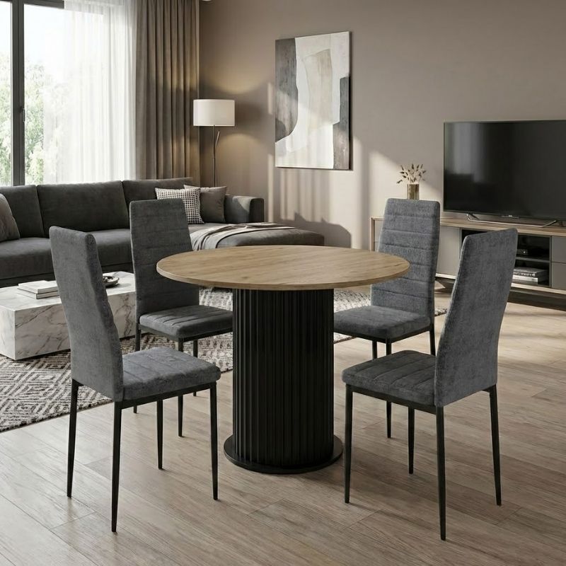 Σετ Τραπεζαρία 5τμχ Bohema - Rosa Megapap Χρώμα Μαύρο/sepet oak - Γκρι Ø90x77,7εκ.