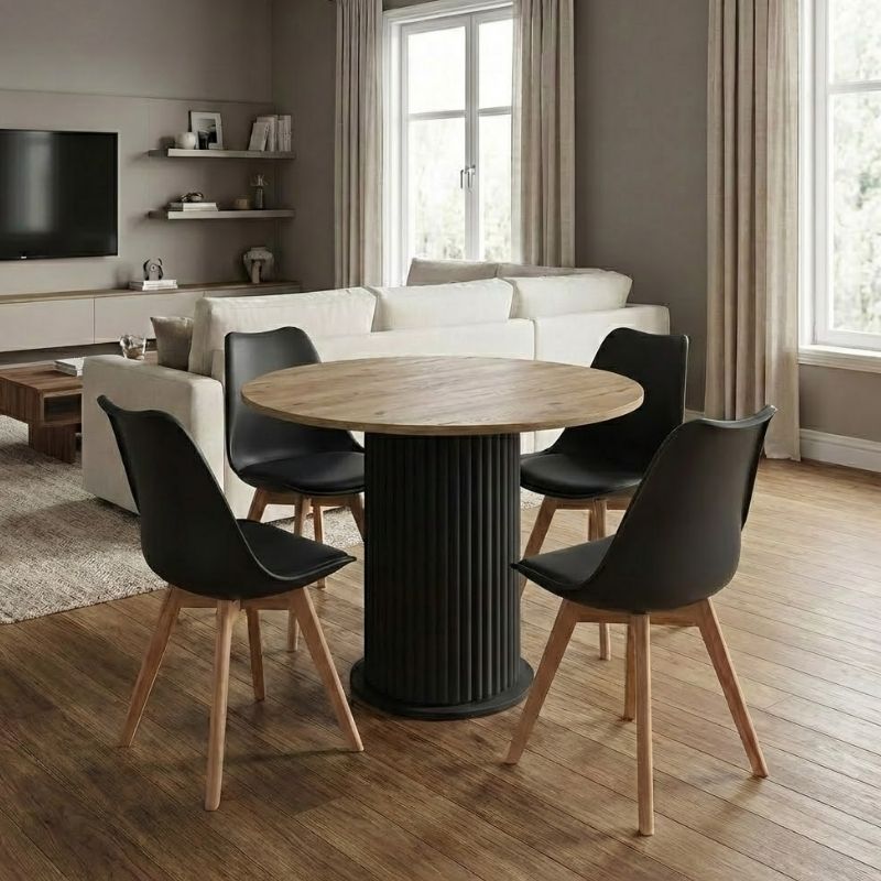 Σετ Τραπεζαρία 5τμχ Bohema - Viva Megapap Χρώμα Μαύρο/sepet oak - Μαύρο/φυσικό Πόδι Ø90x77,7εκ.