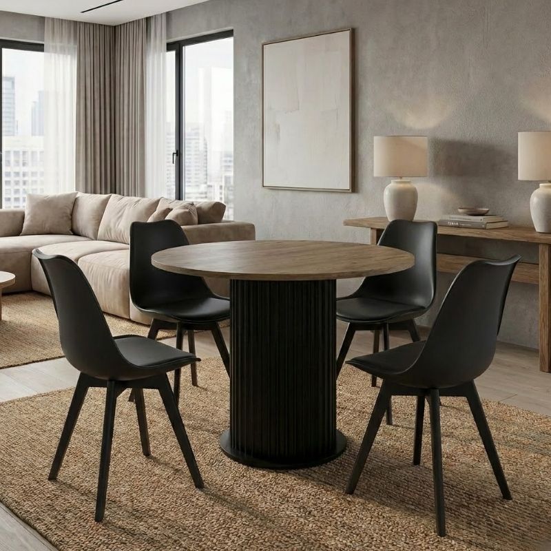 Σετ Τραπεζαρία 5τμχ Bohema - Viva Megapap Χρώμα Μαύρο/sepet oak - Μαύρο Ø90x77,7εκ.