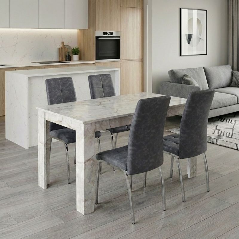 Σετ Τραπεζαρία 5τμχ Darlen - Alma Megapap Χρώμα Λευκό εφέ Μαρμάρου - Γκρι 125x72x74εκ.