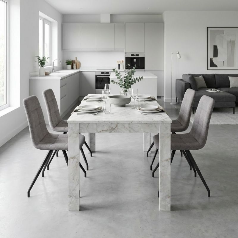 Σετ Τραπεζαρία 5τμχ Darlen - Bianca Megapap Χρώμα Λευκό εφέ Μαρμάρου - Ανοιχτό Μπεζ 125x72x74εκ.