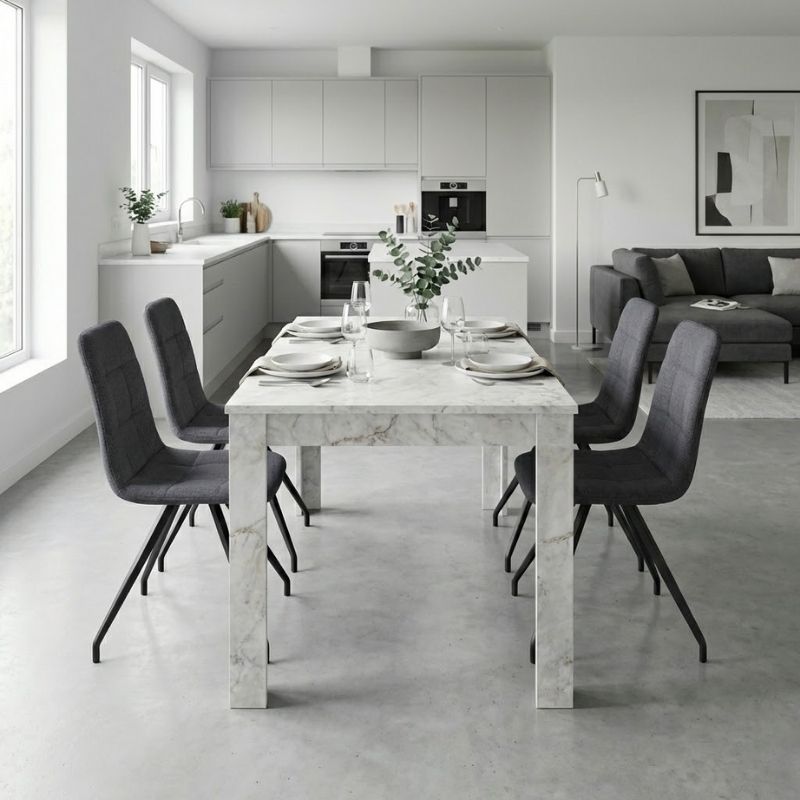 Σετ Τραπεζαρία 5τμχ Darlen - Bianca Megapap Χρώμα Λευκό εφέ Μαρμάρου - Γκρι 125x72x74εκ.