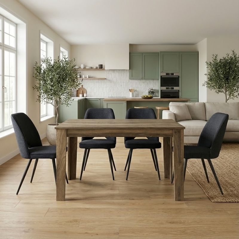 Η τραπεζαρία Darlen - Christy αποπνέει σοφιστικέ κομψότητα και διαχρονικό στυλ. Το υφασμάτινο κάθισμα της καρέκλας και το διακριτικό άνοιγμα στην πλάτη δημιουργούν μια ζεστή και φιλόξενη αίσθηση, ενώ τα μαύρα μεταλλικά πόδια προσφέρουν σταθερότητα και σύγχρονο χαρακτήρα. Ιδανική για τη τραπεζαρία του σπιτιού, αλλά και για επαγγελματικούς χώρους όπως καφέ, εστιατόρια ή AirBnB, όπου η αισθητική λεπτομέρεια κάνει τη διαφορά.