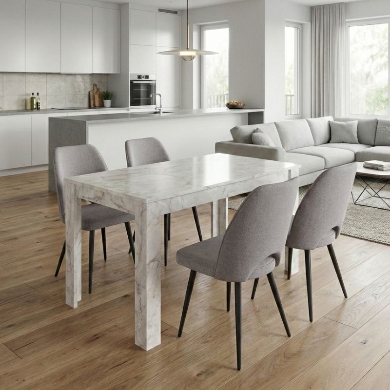 Σετ Τραπεζαρία 5τμχ Darlen - Christy Megapap Χρώμα Λευκό εφέ Μαρμάρου - Ανοιχτό Μπεζ 125x72x74εκ.