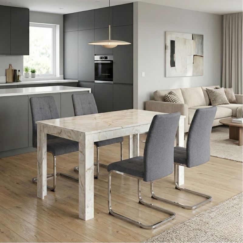 Σετ Τραπεζαρία 5τμχ Darlen - Laura Megapap Χρώμα Λευκό εφέ Μαρμάρου - Γκρι 125x72x74εκ.