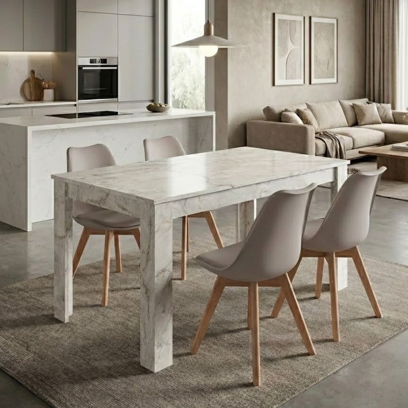 Σετ Τραπεζαρία 5τμχ Darlen - Viva Megapap Χρώμα Λευκό εφέ Μαρμάρου - Cappuccino 125x72x74εκ.