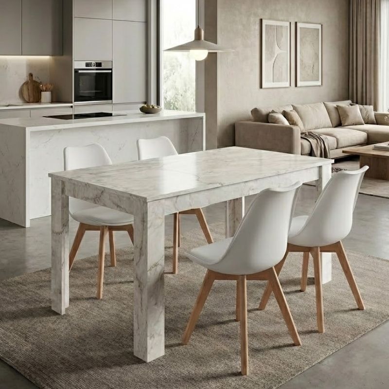 Σετ Τραπεζαρία 5τμχ Darlen - Viva Megapap Χρώμα Λευκό εφέ Μαρμάρου - Λευκό/φυσικό Πόδι 125x72x74εκ.