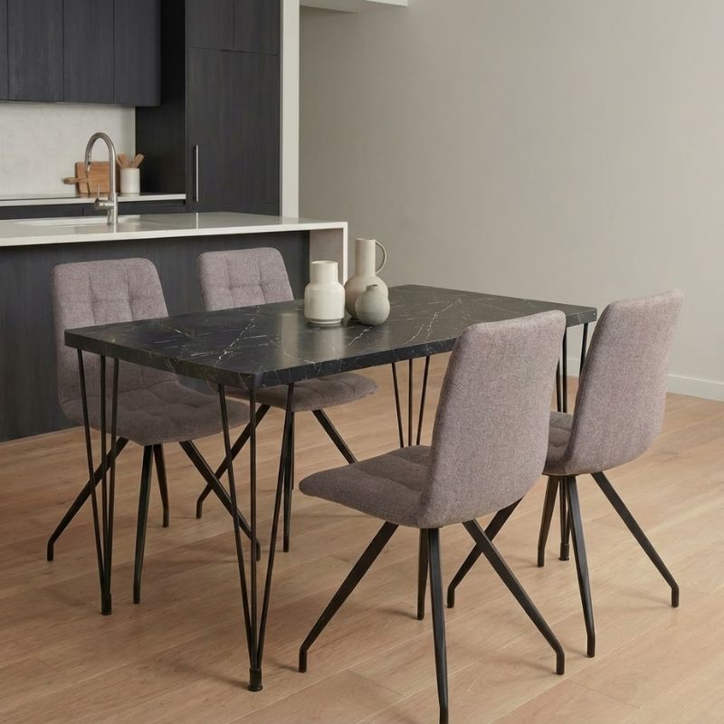 Σετ Τραπεζαρία 5τμχ Roger - Bianca Megapap mdf - Ύφασμα Χρώμα Μαύρο εφέ Μαρμάρου - Ανοιχτό Μπεζ 120x70x75εκ.