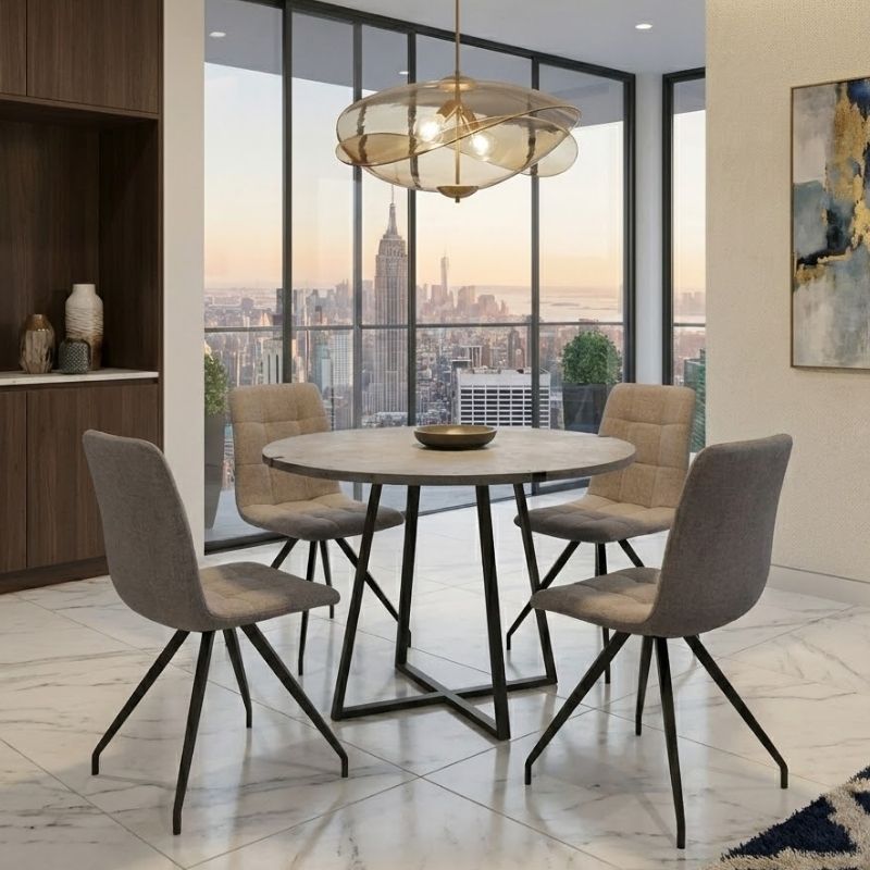 Σετ Τραπεζαρία 5τμχ Rubes - Bianca Megapap Χρώμα Γκρι Σκυροδέματος - Ανοιχτό Μπεζ Ø100x78εκ.